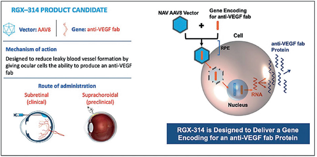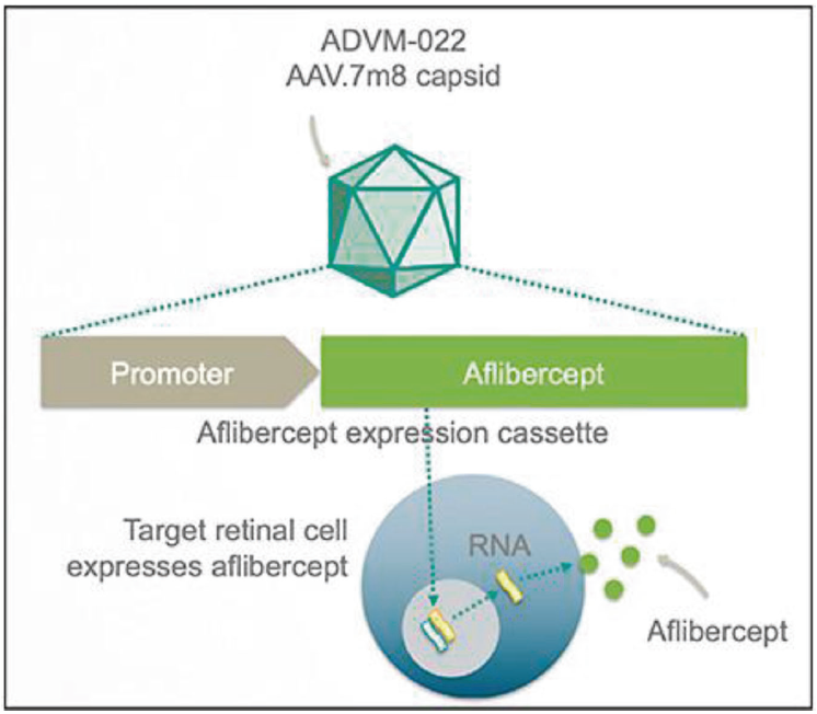 國外類似的有表達(dá)阿柏西普的ADVM-022和表達(dá)VEGF抗體的RGX-314。