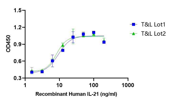 Fig5:Recombinant human IL-21 protein stimulates secretion of IFN- γ by NK-92