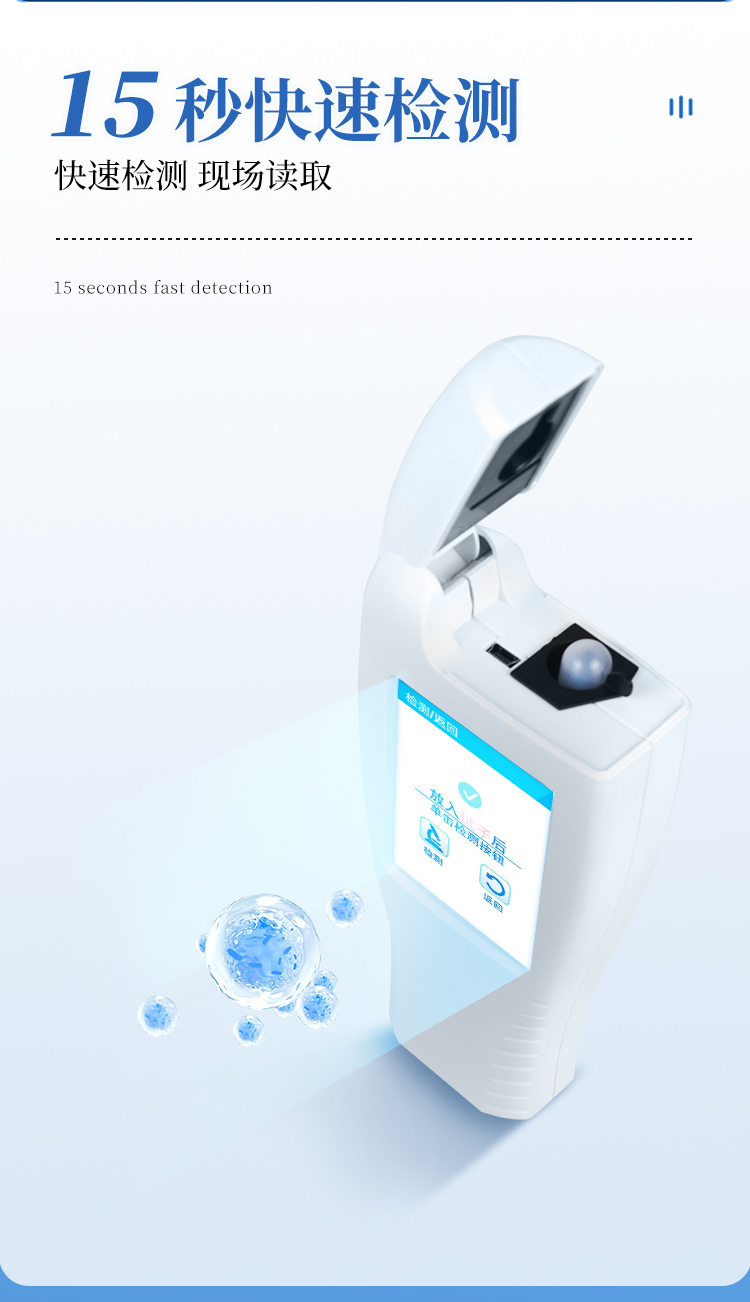 該設(shè)備為全新升級(jí)產(chǎn)品,大屏幕觸摸顯示屏,代替?zhèn)鹘y(tǒng)按鍵。操作采用生物化學(xué)反應(yīng)方法檢測(cè)ATP含量,ATP熒光檢測(cè)儀基于螢火蟲發(fā)光原理,利用“熒光素酶—熒光素體系”快速檢測(cè)三磷酸腺苷(ATP)。ATP拭子含有可以裂解細(xì)胞膜的試劑,能將細(xì)胞內(nèi)ATP釋放出來,與試劑中含有的特異性酶發(fā)生反應(yīng),產(chǎn)生光,再用熒光照度計(jì)檢測(cè)發(fā)光值,微生物的數(shù)量與發(fā)光值成正比,由于所有生物活細(xì)胞中含有恒量的ATP,所以ATP含量可以清晰地表明樣品中微生物與其他生物殘余的多少,用于判斷衛(wèi)生狀況。