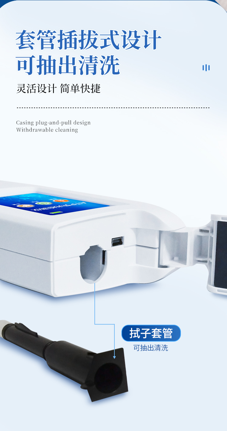 | 實(shí)用性 —— 可根據(jù)環(huán)境檢測(cè)需求設(shè)定上下限值,做到數(shù)據(jù)快速評(píng)估預(yù)警,表面潔凈度快速篩查。 | 靈敏度高 —— *************** | 速度快 —— 常規(guī)培養(yǎng)法18-24h以上,而ATP只需要十幾秒鐘 . | 可行性 —— 微生物數(shù)量與微生物體內(nèi)所含ATP有明確的相關(guān)性。 通過檢測(cè)ATP含量,可間接得出反應(yīng)中微生物數(shù)量 | 可操作性 —— 傳統(tǒng)培養(yǎng)方法需要在實(shí)驗(yàn)室由經(jīng)過培訓(xùn)的技術(shù)人員進(jìn)行操作;而ATP快速潔凈度檢測(cè)操作非常簡(jiǎn)便,只需簡(jiǎn)單的培訓(xùn)即可由一般工作人員進(jìn)行現(xiàn)場(chǎng)操作。 | 體驗(yàn)更好 —— 試子套管采用插拔式靈活設(shè)計(jì),可定期清洗長(zhǎng)期使用,延長(zhǎng)儀器壽命。 |