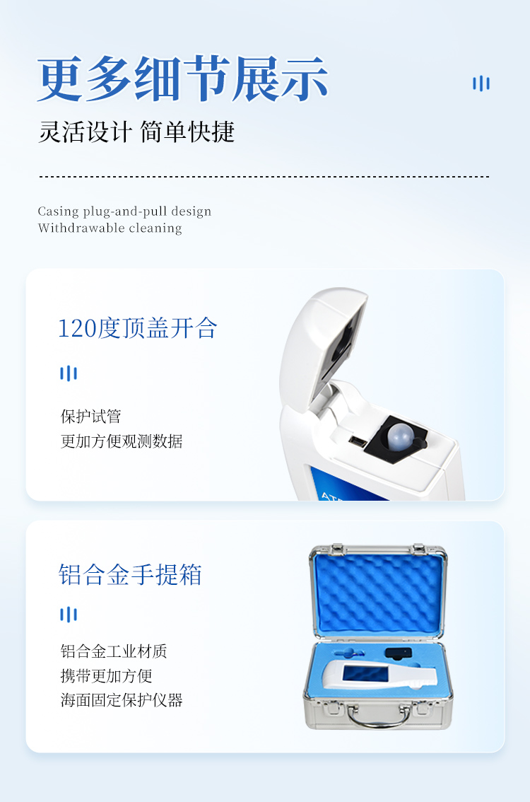隨機(jī)配置:ATP熒光檢測(cè)儀(手持)主機(jī)、鋁合金手提箱、驅(qū)動(dòng)U盤、儀器包、掛繩、PC數(shù)據(jù)線、數(shù)據(jù)分析軟件、中文操作手冊(cè)