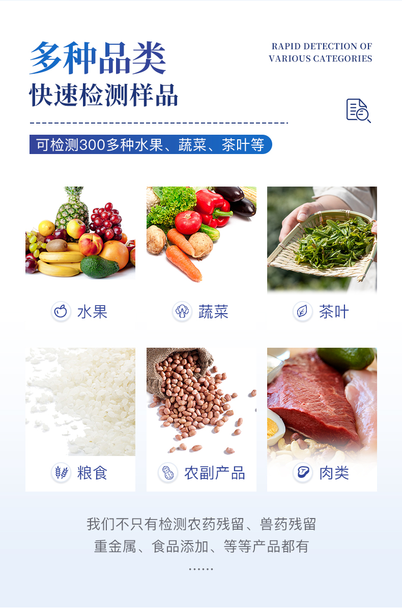 綜合農(nóng)藥殘留檢測儀,除了遵循國標(biāo)對有機磷和氨基甲酸酯類農(nóng)藥進行檢測外,還可以針對具體農(nóng)藥進行分項準確檢測,包含吡蟲啉、噻蟲嗪、多菌靈、百菌清、克百威、毒死蜱、異丙威、啶蟲脒、氟蟲腈、水胺硫磷、甲萘威、三唑磷、百草枯、甲霜靈、殺螟硫磷、百菌清-多菌靈2合1、氟蟲腈-甲萘威2合1、甲基對硫磷、乙草胺、阿維菌素、有機磷、甲草胺、涕滅威、噻菌靈、三唑酮、氯吡脲、多效唑、氯噻啉、霜霉威、噻蟲啉、辛硫磷、氯氰菊酯、苯醚甲環(huán)唑、4-氯苯氧乙酸、2,4-二氯苯氧乙酸、2,4,5-三氯苯氧乙酸、6-芐基腺嘌呤、除草定、烯啶蟲胺、異菌脲、氟苯脲、腐霉利、甲氰菊酯、**氯氟氰菊酯、二甲戊靈、氟節(jié)甲基異柳磷、噠螨靈、噻蟲胺、烯酰嗎啉、嘧菌酯、氟樂靈、嘧霉胺、三唑酮/三唑醇、滅蠅胺、戊唑醇、甲拌磷、氯蟲苯甲酰胺、二嗪磷、氧樂果、甲基吡啶磷、阿滅丁、雙甲脒等眾多殺蟲劑化合物。