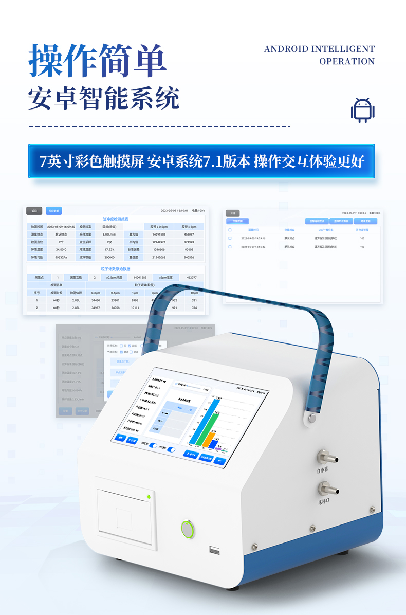 | 1、安卓系統(tǒng)7.1版本,操作交互體驗更好。 | 2、內置溫濕度傳感器、環(huán)境氣壓傳感器 | 3、核心部件光散射傳感器明顯消除腔體的雜散光,信噪比大為提高。從而使測量更準確更可靠。 | 4、按95%置信度(UCL)計算,計數結果可換算成m3和ft3 | 5、依照凈化級別劃分和規(guī)定,自動判定凈化級別,使用便利。 | 6、帶審計追蹤功能,可查詢、可追溯、可控制,符合FDA 21CFR PART11規(guī)范 | 7、支持wifi、藍牙傳輸,數據可無線上傳;同時支持U盤拷貝數據,免驅動插拔。 | 8、配置監(jiān)管平臺,檢測結果可直接無線傳至平臺,進行潔凈度長短期分析,輔助管理。 | 9、內置新一代高速熱敏打印機,可選擇所需要打印的粒徑通道,靈活打印結果。 | 10、交直流兩用,內置充電鋰電池,環(huán)保耐用可支持連續(xù)采樣6小時以上。 | 11、便捷簡易伸縮式云臺支架,安裝采樣操作更加方便。 |