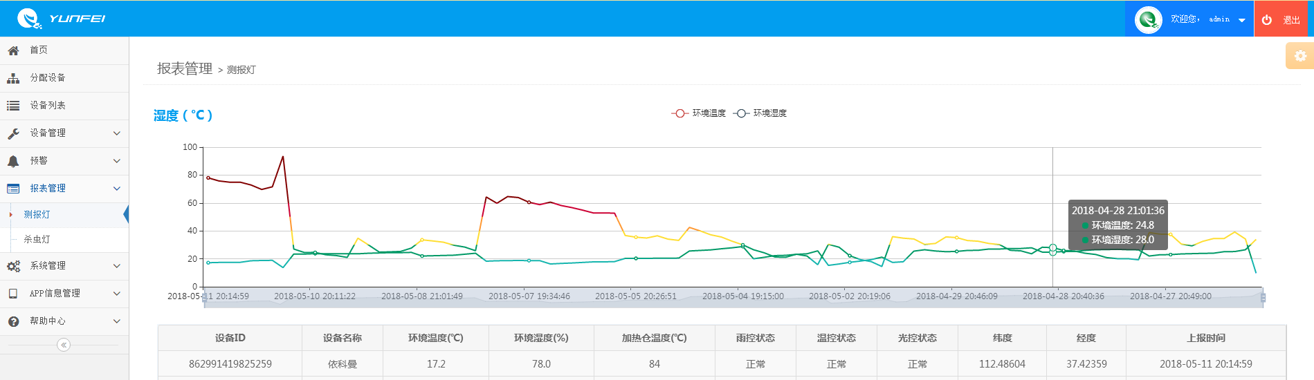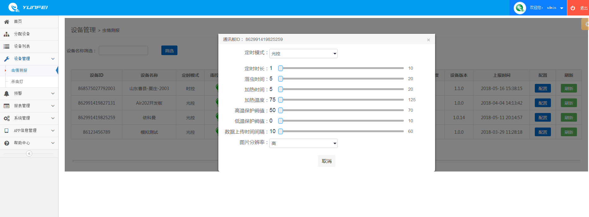 拍照式太陽能全自動(dòng)蟲情測(cè)報(bào)燈 YT-CQ04 軟件平臺(tái)界面: