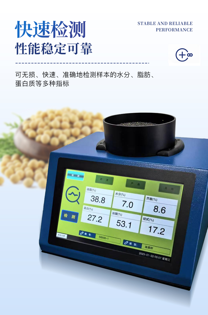 近紅外光譜分析儀,是針對原糧、食品、飼料等行業(yè)開發(fā)的專用 檢測設(shè)備,可無損、快速、準(zhǔn)確地檢測樣本的水分、脂肪、蛋白質(zhì)等多種指標(biāo)。