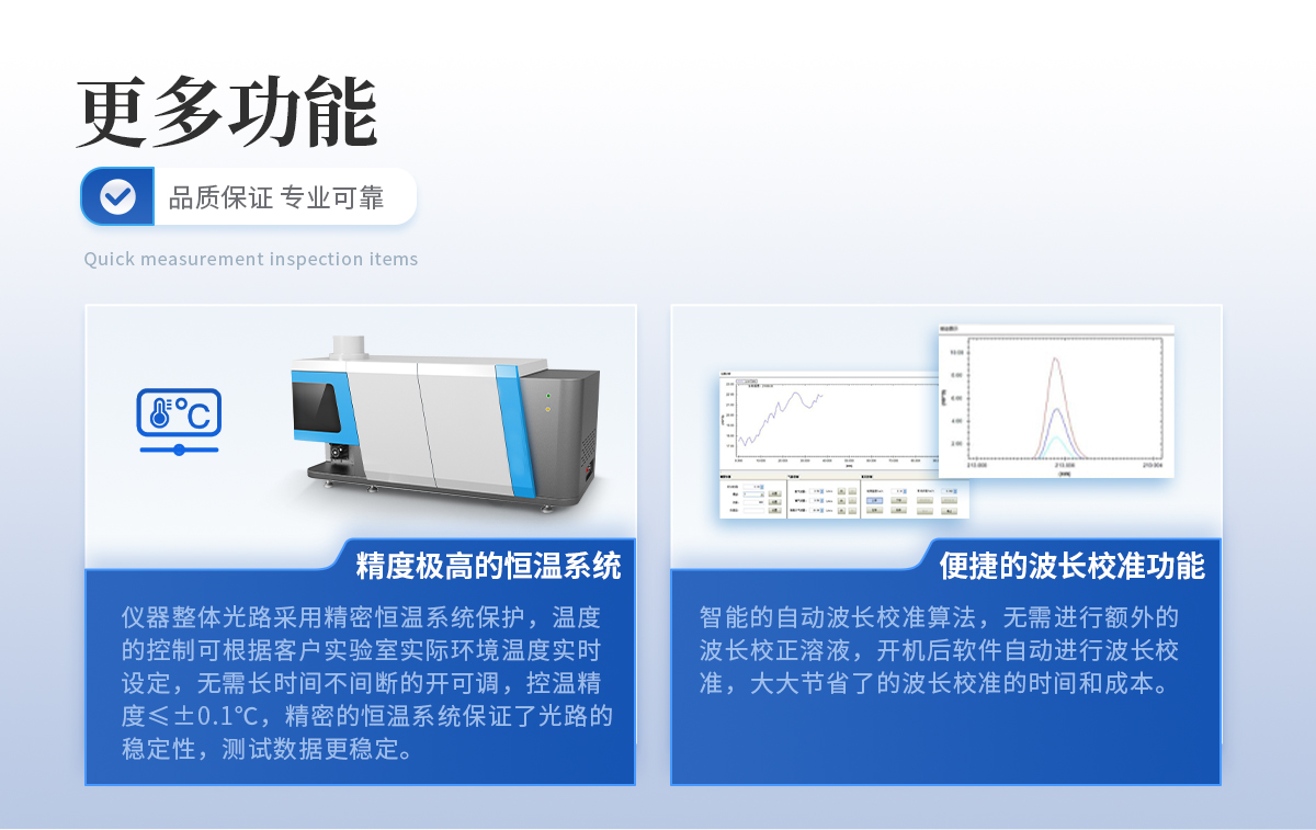 儀器整體光路采用精密恒溫系統(tǒng)保護(hù),溫度的控制可根據(jù)客戶實(shí)驗(yàn)室實(shí)際環(huán)境溫度實(shí)時(shí)設(shè)定,無需長(zhǎng)時(shí)間不間斷的開可調(diào),控溫精度≤±0.1℃,精密的恒溫系統(tǒng)保證了光路的穩(wěn)定性,測(cè)試數(shù)據(jù)更穩(wěn)定。 9、靈敏度**的檢測(cè)器: