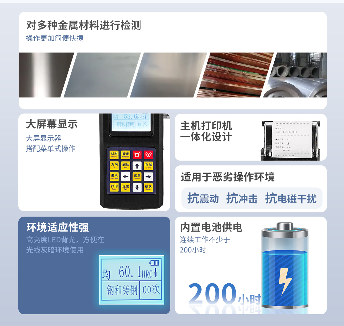 ● 依據(jù)里氏硬度測(cè)量原理,可以對(duì)多種金屬材料進(jìn)行檢測(cè),測(cè)值準(zhǔn)確穩(wěn)定;