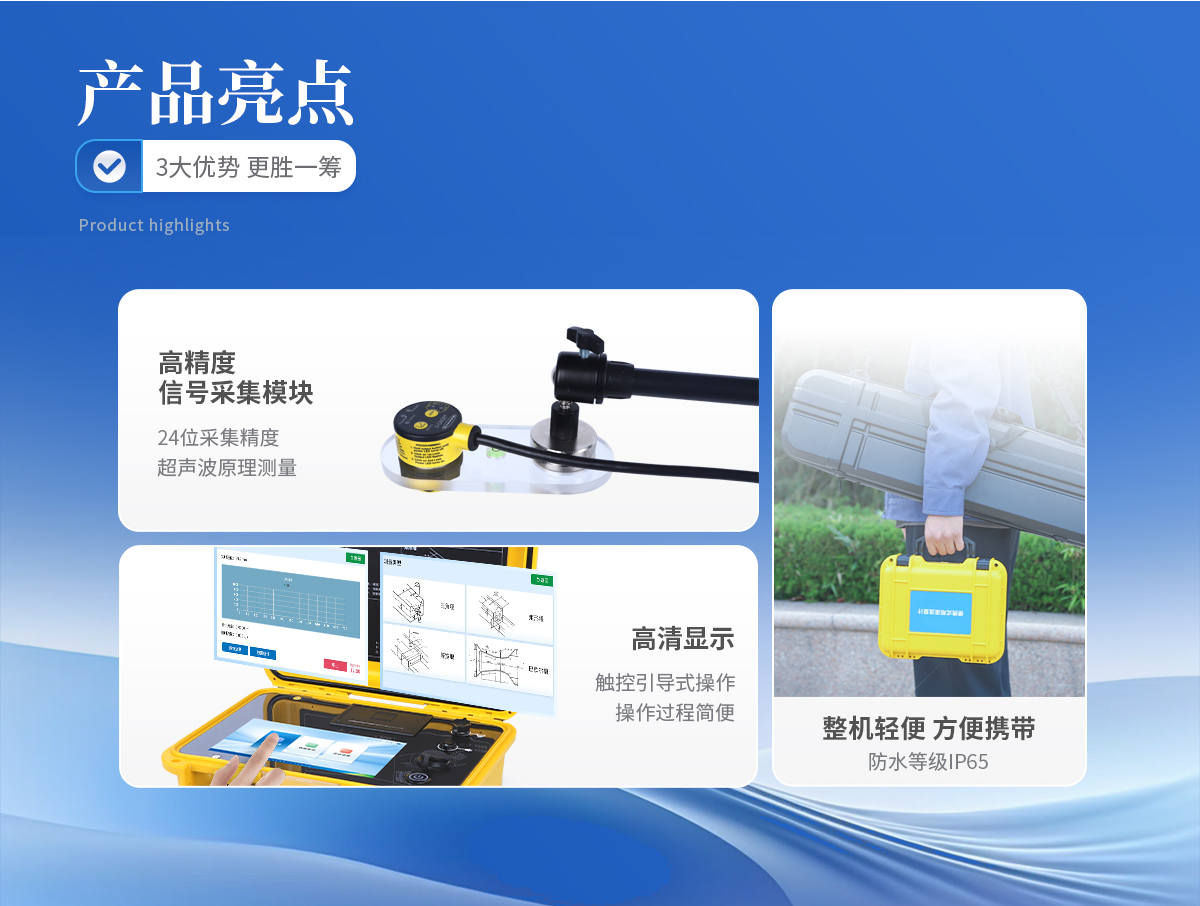 適應于四種基本堰型:三角堰、 矩形堰、 等寬堰、 巴歇爾槽 高精度信號采集模塊,24 位采集精度,測量數(shù)據(jù)真實有效 大屏幕彩色液晶觸摸屏,觸控引導式操作,操作過程簡便 曲線顯示流量變化趨勢及液位變化趨勢 友好的人機交互界面,圖文結(jié)合,即可對儀器進行操作 儀器帶有微型打印機,可現(xiàn)場直接打印測量數(shù)據(jù) 可與電腦連接,將測量數(shù)據(jù)輸出至電腦,便于用戶對數(shù)據(jù)進行統(tǒng)計分析 可存儲 50000 次的測量歷史記錄 內(nèi)含大容量鋰電池,一次充電可連續(xù)測量 72 小時 流量計內(nèi)置智能化電源管理系統(tǒng),延長電池使用壽命 開機密碼進入,有效保護測量比對數(shù)據(jù)及結(jié)果 手提箱式設(shè)計,整機重量輕,方便用戶攜帶 具有USB數(shù)據(jù)導出和打印機數(shù)據(jù)打印功能 可選配GRS或北頭定位功能