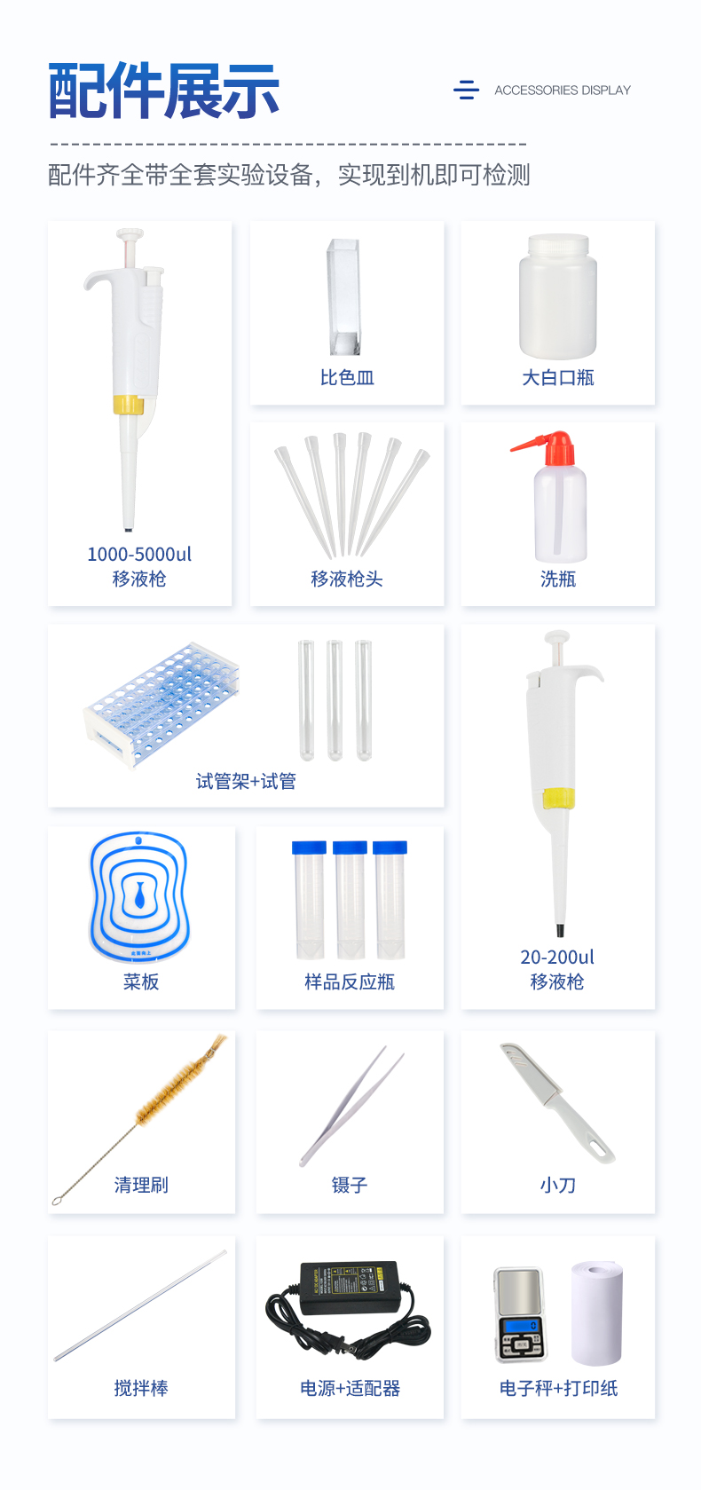 | 乙酰膽堿酯酶和丁酰膽堿酯酶試劑均可以使用,符合國家標(biāo)準(zhǔn)和農(nóng)業(yè)部標(biāo)準(zhǔn)的要求。 | 自動(dòng)判斷樣品是否合格,檢測結(jié)果更加直觀。 | 儀器具有100多種蔬菜名稱菜單庫,分類管理,并可按需添加或刪除蔬菜名,編輯蔬菜名稱,可直接打印出蔬菜名稱。 | 檢測通道:10個(gè)檢測通道,可以同時(shí)測試多個(gè)樣品,循環(huán)檢測,即放即檢,每個(gè)樣品由程序控制分別獨(dú)立工作,不會(huì)互相干擾。 | 智能操作系統(tǒng),采用更加人性化操作,主控采用多核處理器,主頻1.88Ghz,運(yùn)轉(zhuǎn)速度更快速,穩(wěn)定性更強(qiáng)。 | 顯示方式:7英寸高靈敏真彩觸摸屏顯示,人性化中文操作界面,讀數(shù)直觀、簡單。 | 打印機(jī)采用串口5v打印,可選擇手動(dòng)打印或者自動(dòng)打印,三分鐘出打印結(jié)果,打印格式為檢測人姓名、吸光度差值、檢測時(shí)間、檢測機(jī)構(gòu)、樣品名稱及結(jié)果判定。 | 光源采用進(jìn)口超高亮發(fā)光二極管,具有低功耗、高精度、穩(wěn)定性強(qiáng)、光源可控可以關(guān)掉不使用的光源,響應(yīng)速度快等優(yōu)點(diǎn)。 | 智能恒流穩(wěn)壓,光強(qiáng)自動(dòng)校準(zhǔn),長時(shí)間連續(xù)工作光源無溫漂現(xiàn)象。 | 儀器具有GPRS遠(yuǎn)傳功能,可插手機(jī)卡實(shí)現(xiàn)數(shù)據(jù)遠(yuǎn)傳平臺(tái),wifi聯(lián)網(wǎng)功能,可將數(shù)據(jù)快速上傳電腦,進(jìn)行數(shù)據(jù)管理與統(tǒng)計(jì)。 | 采用USB2.0接口設(shè)計(jì),方便數(shù)據(jù)的存貯和移動(dòng),并可隨時(shí)與計(jì)算機(jī)直接相連,并且可用計(jì)算機(jī)控制儀器。實(shí)現(xiàn)數(shù)據(jù)查詢、瀏覽、分析、統(tǒng)計(jì)、打印等。 | 智能化程度高,儀器具有自檢功能:具有開機(jī)自檢和調(diào)零功能,具有自動(dòng)檢測重復(fù)性功能 | 儀器具有自身保護(hù)功能,可設(shè)置用戶名及密碼,防止非工作人員操作等。 | 采用DC12v直流供電,安全系統(tǒng)更高,并且配備6A鋰電池充電器。 | 儀器具有重新校準(zhǔn)、鎖定、恢復(fù)出廠設(shè)置功能。 |