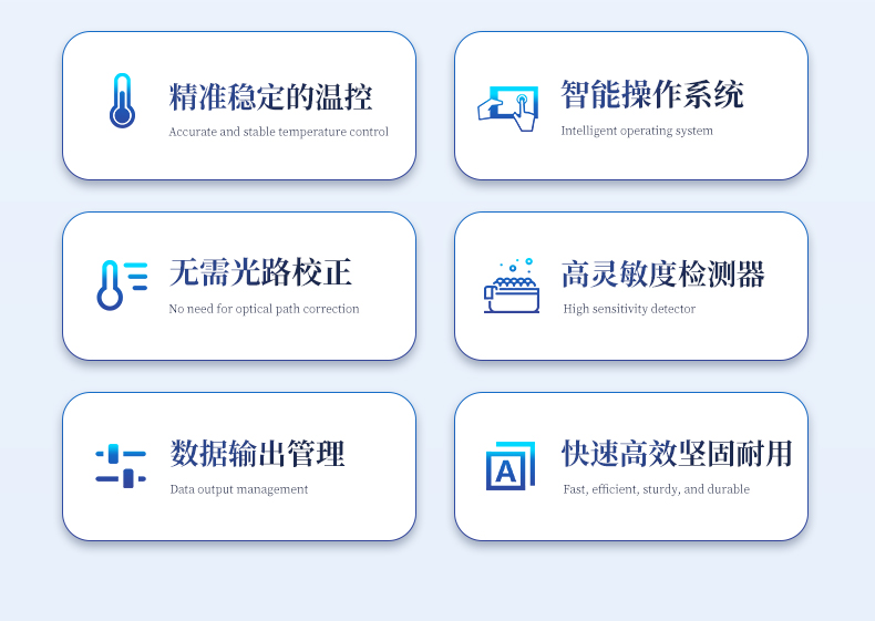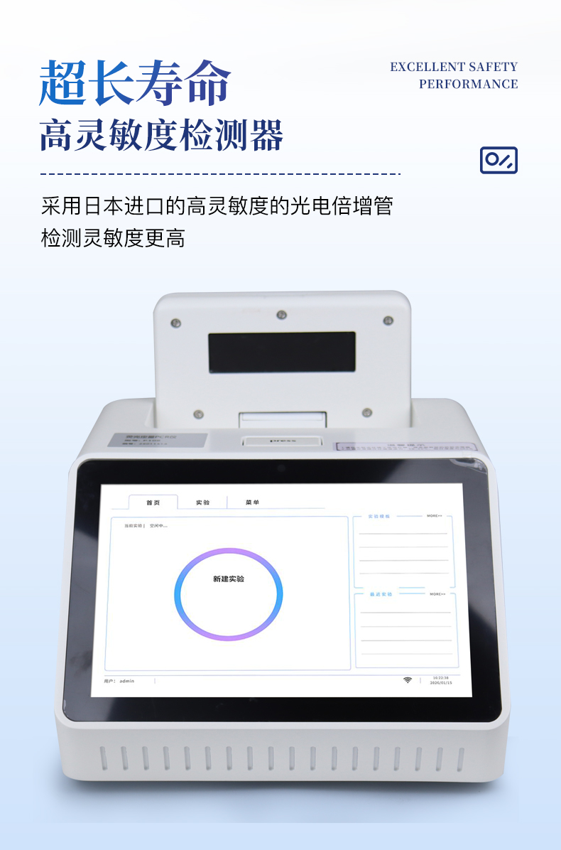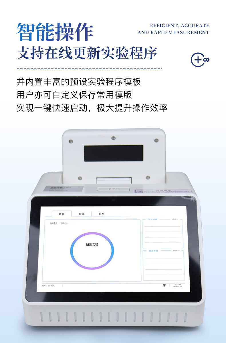 | 1.智能操作系統(tǒng),實驗盡在掌握 | A雙模式靈活控制:支持通過儀器觸摸屏獨立運行,也支持通過電腦軟件進行遠程控制與數(shù)據(jù)管理,適應(yīng)不同實驗場景需求。 | B程序更新與預(yù)設(shè):支持在線更新實驗程序,并內(nèi)置豐富的預(yù)設(shè)實驗程序模板,用戶亦可自定義保存常用模版,實現(xiàn)一鍵快速啟動,極大提升操作效率。 | C極簡啟動體驗(可選配):可定制集成攝像頭掃描系統(tǒng),用戶只需掃描樣品板或程序卡的二維碼,即可自動識別并調(diào)用對應(yīng)實驗程序,簡化流程,避免人為設(shè)置錯誤。 | D操作簡單:無論是觸摸屏界面還是電腦軟件,均設(shè)計得直觀易懂,新用戶也能快速上手。預(yù)置常用程序模板,進一步簡化操作流程。 | 2.精準(zhǔn)穩(wěn)定的溫控與光學(xué)核心 | A長久精準(zhǔn)的溫控系統(tǒng):采用進口***TEC半導(dǎo)體制冷模塊,控溫精準(zhǔn)(±0.1°C),孔間溫度均勻性**(≤±0.3°C)。系統(tǒng)穩(wěn)定性卓越,長期使用性能衰減小,校準(zhǔn)周期長達數(shù)年,顯著降低維護成本與運營中斷。 | B免維護的靈敏光學(xué)系統(tǒng):配備4個獨立LED光源與4個獨立光電二極管檢測器,實現(xiàn)四通道熒光同步精準(zhǔn)檢測。采用超長壽命進口光源,設(shè)計壽命期內(nèi)免維護,無需額外校準(zhǔn)或更換,保障檢測結(jié)果長期一致性與高靈敏度。 | C卓越的數(shù)據(jù)質(zhì)量:實驗線性相關(guān)性高(R2≥0.999),重復(fù)性優(yōu)異(孔間CV值低),確保定量結(jié)果準(zhǔn)確可靠,數(shù)據(jù)置信度高 | 3.**便捷的數(shù)據(jù)與輸出管理 | A多重數(shù)據(jù)導(dǎo)出方式:支持通過USB存儲設(shè)備直接拷貝,或經(jīng)由Wi-Fi無線網(wǎng)絡(luò)傳輸數(shù)據(jù)至本地服務(wù)器或云端,方便靈活,滿足各類實驗室數(shù)據(jù)管理習(xí)慣。 | B豐富的報告導(dǎo)出與打?。褐С稚刹?dǎo)出多種格式(如PDF、Excel)的實驗報告。儀器兼容USB熱敏打印機、藍牙無線打印機及常規(guī)A4打印機,可直接在儀器上或通過電腦一鍵導(dǎo)出并打印專業(yè)報告,便于結(jié)果存檔與即時分享。 | 4.快速**與堅固耐用 | A升降溫速度快:優(yōu)化設(shè)計的溫控系統(tǒng)具備高速升降溫能力,顯著縮短單次循環(huán)與整體檢測時間,提升實驗通量。 | B超長使用壽命:核心部件均選用工業(yè)級耐用材料與設(shè)計,整機運行穩(wěn)定可靠,致力于為用戶提供長久的投資回報。 |
