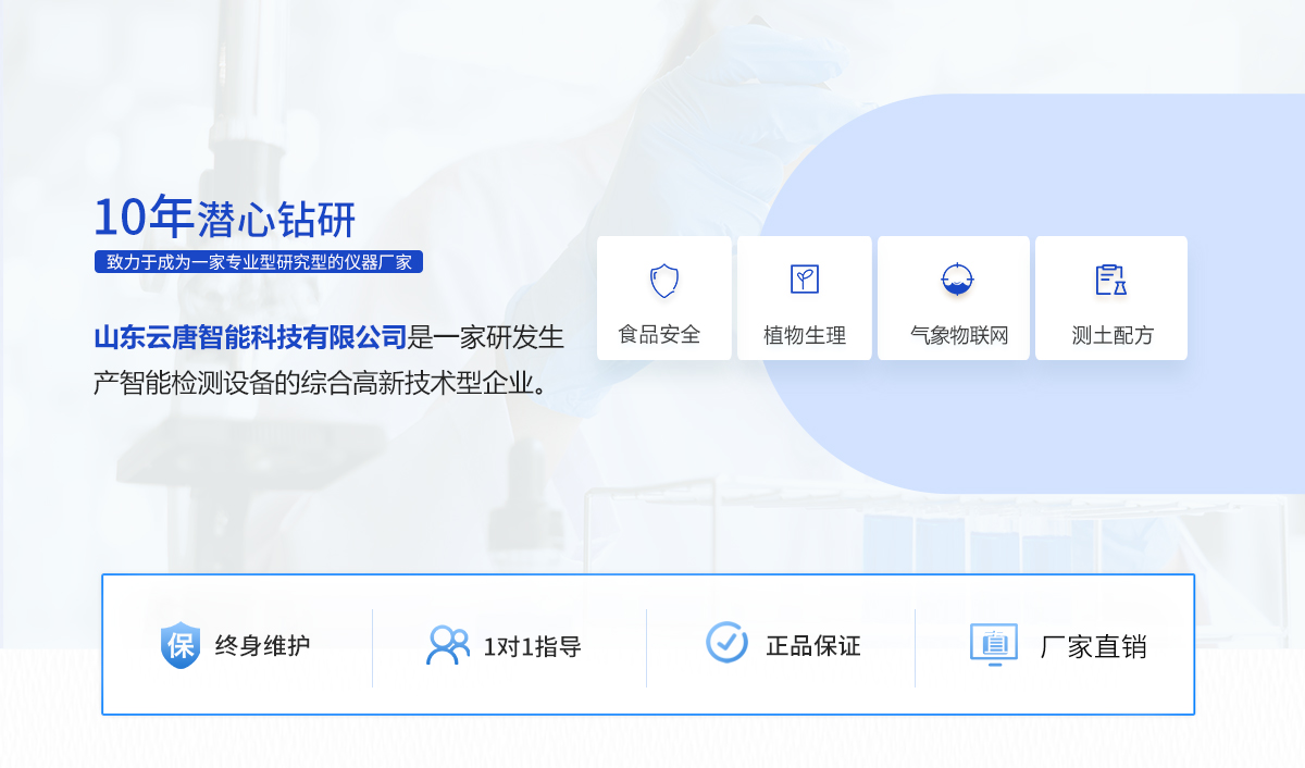 Copyright @ 2019-2022 山東云唐智能科技有限公司 All Rights Reserved. 版權(quán)所有 農(nóng)藥殘留檢測儀 食品檢測儀 細(xì)菌檢測儀源頭廠家