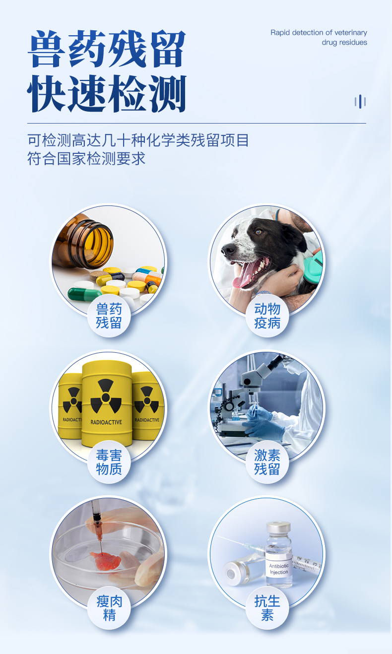 | 可快速檢測(cè)病害肉、組胺、揮發(fā)性鹽基氮,儀器預(yù)留其他項(xiàng)目檢測(cè)程序和端口,根據(jù)日后需求可方便的自主增加檢測(cè)項(xiàng)目。 |