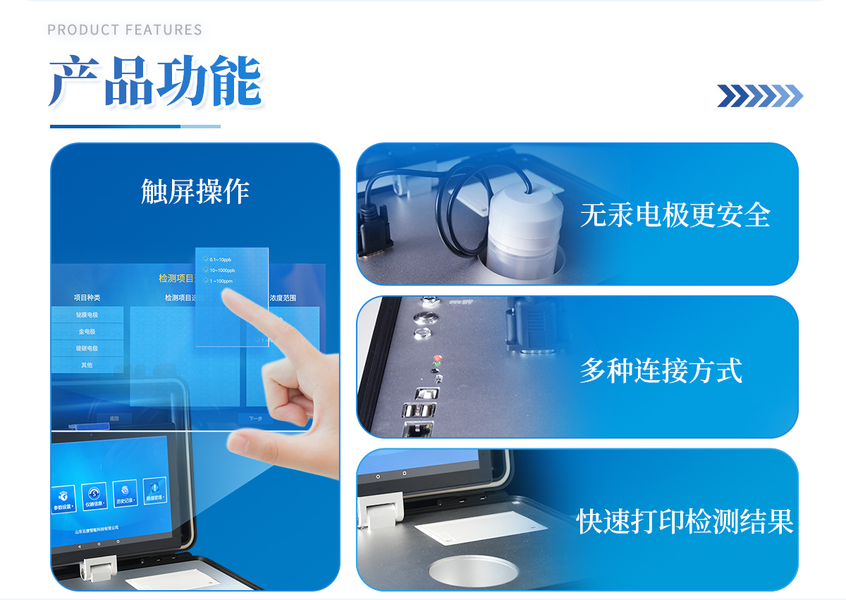 可快速檢測(cè)重金屬鉛、鎘、銅、鋅、汞、砷等。