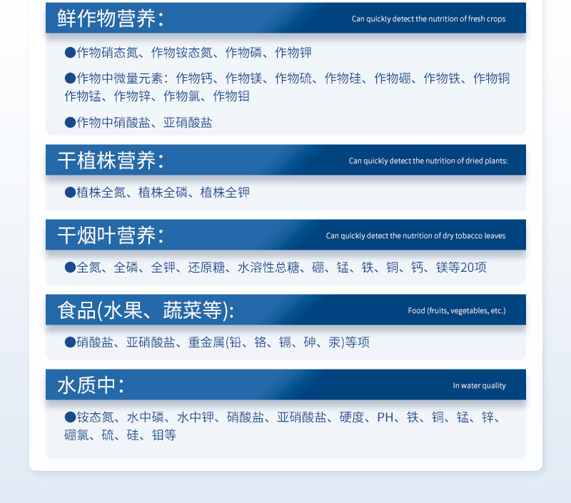 產(chǎn)品介紹: 培養(yǎng)基養(yǎng)分檢測儀 YT-TRX03 產(chǎn)品簡介:配套齊全:該儀器集藥、器、儀為一體,攜帶方便,相當(dāng)于一個小型移動實驗室,無需用戶自配附件,亦可靈活野外流動測試。適于農(nóng)業(yè)服務(wù)部門或農(nóng)資經(jīng)銷商、合···2026-02-23