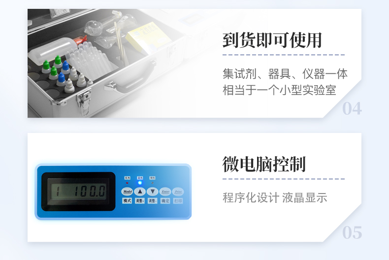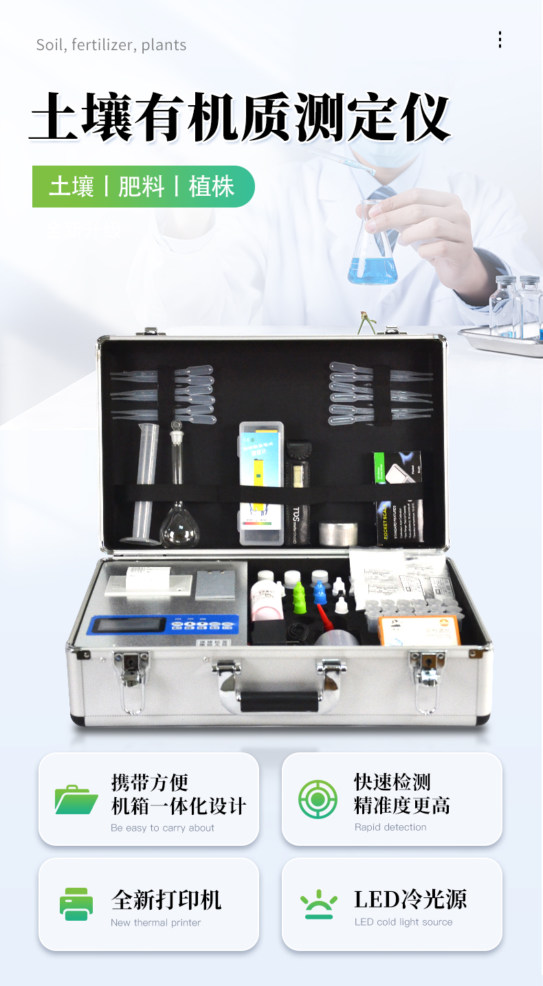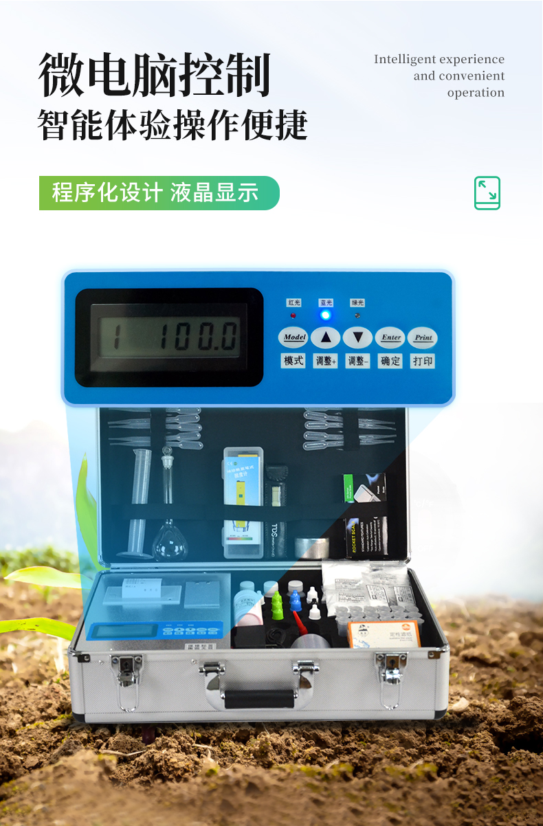配套齊全:該儀器集藥、器、儀為一體,攜帶方便,相當(dāng)于一個(gè)小型實(shí)驗(yàn)室。適于農(nóng)業(yè)服務(wù)部門或農(nóng)資經(jīng)銷商、肥料廠商測(cè)土施肥和鑒別肥料真假。