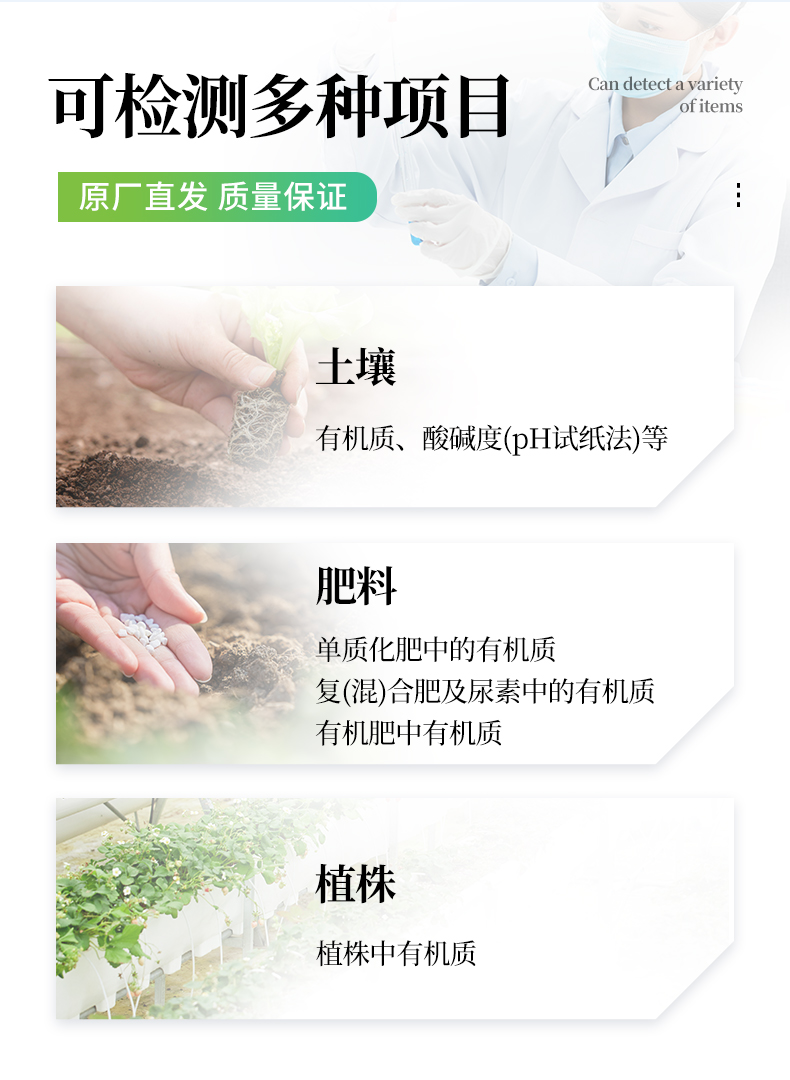 4、全項(xiàng)目土壤肥料養(yǎng)分檢測(cè)儀可檢測(cè)土壤及化肥、有機(jī)肥(含葉面肥、水溶肥、噴施肥等)、植株中的速效氮、速效磷、有效鉀、全氮、全磷、全鉀、有機(jī)質(zhì)、酸堿度,鈣、鎂、硫、鐵、錳、硼、鋅、銅、氯、硅、鉬等各種中微量元素以及鉛、鉻、鎘、汞、砷、鎳、鋁、氟、鈦、硒等各種重金屬含量。