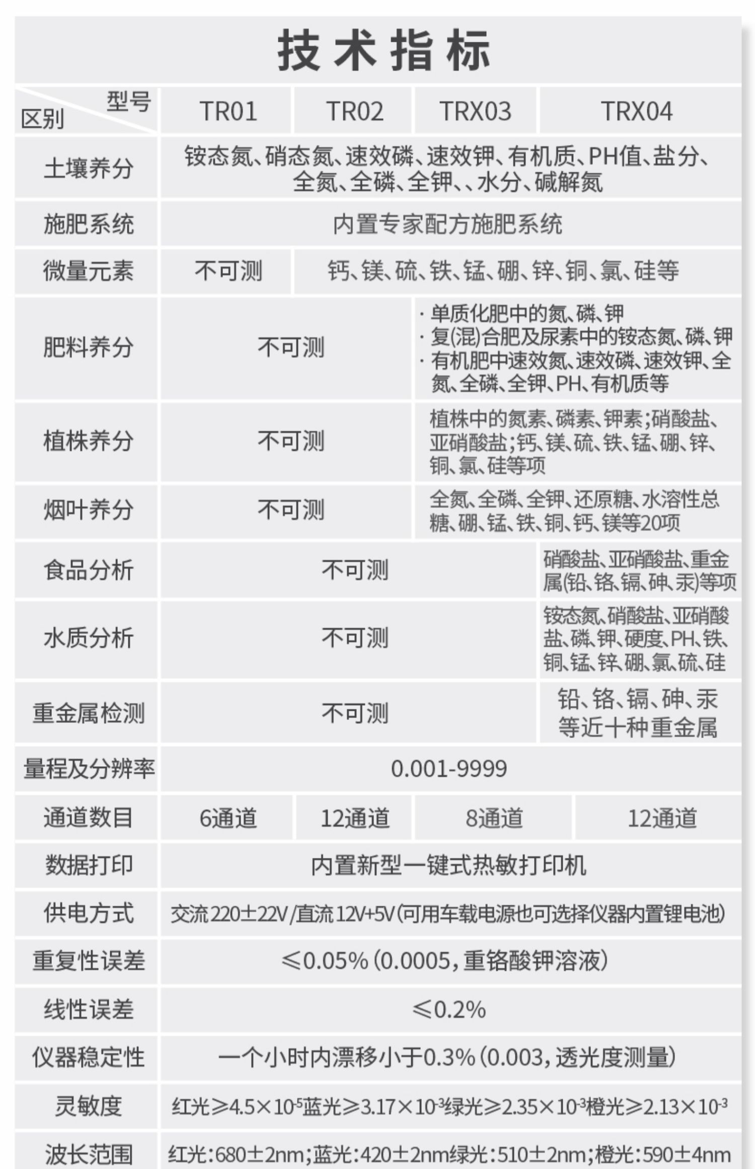 土壤重金屬快速測定儀 YT-ZJB 技術指標: