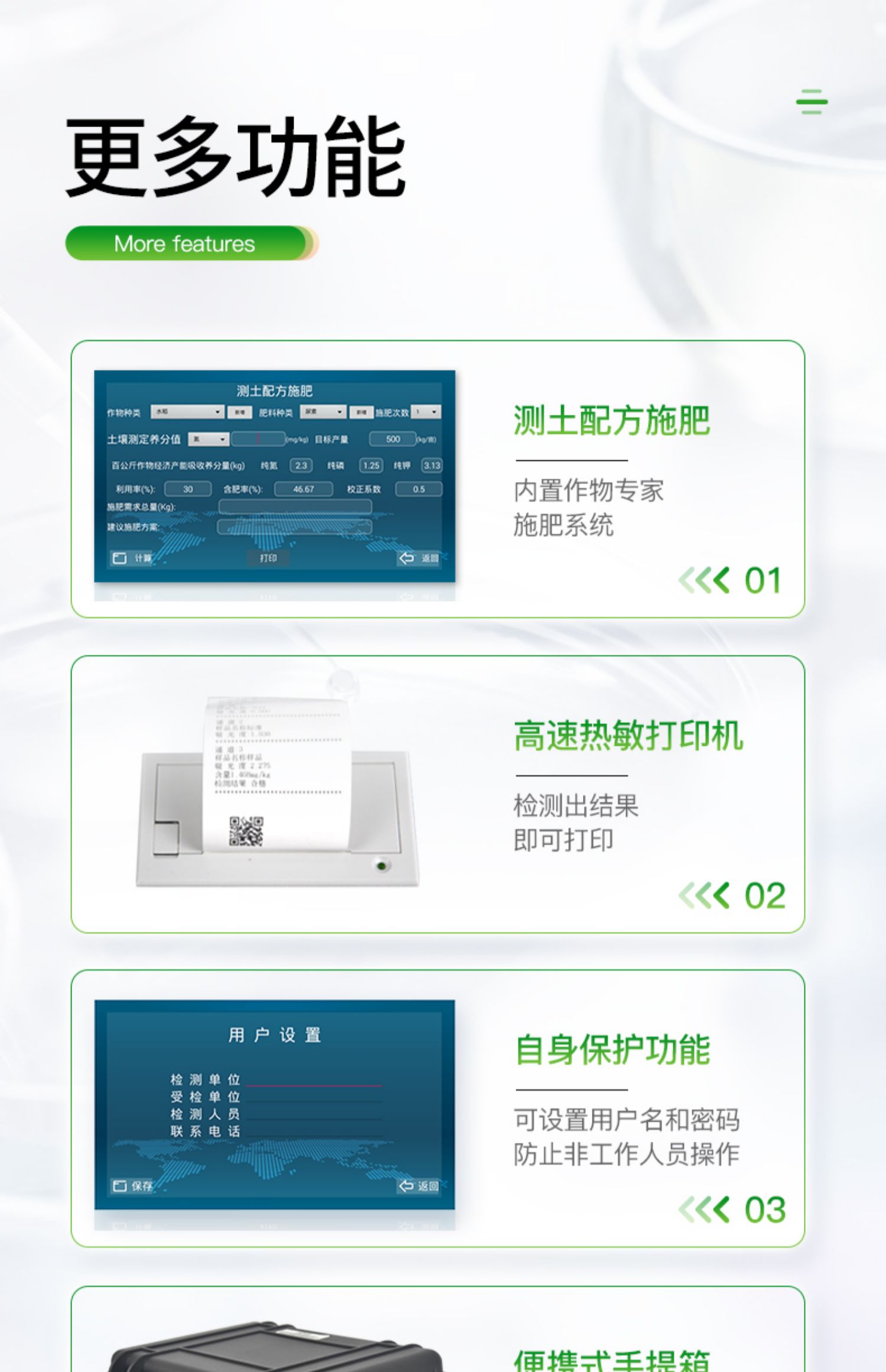 3、擴展性強,該儀不僅可以專用于重金屬的檢測還可以擴展測定土壤、肥料、植株中養(yǎng)分的測試,一機多用。