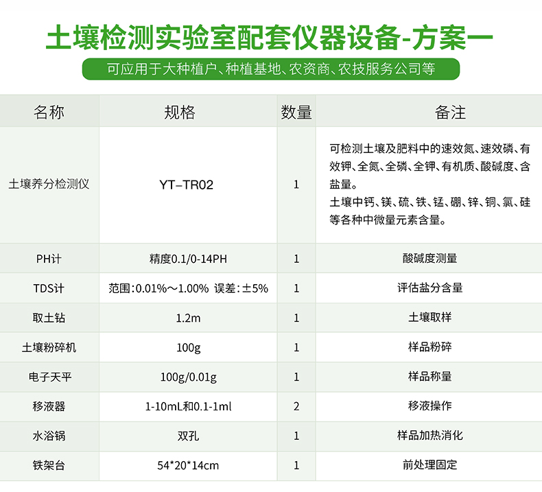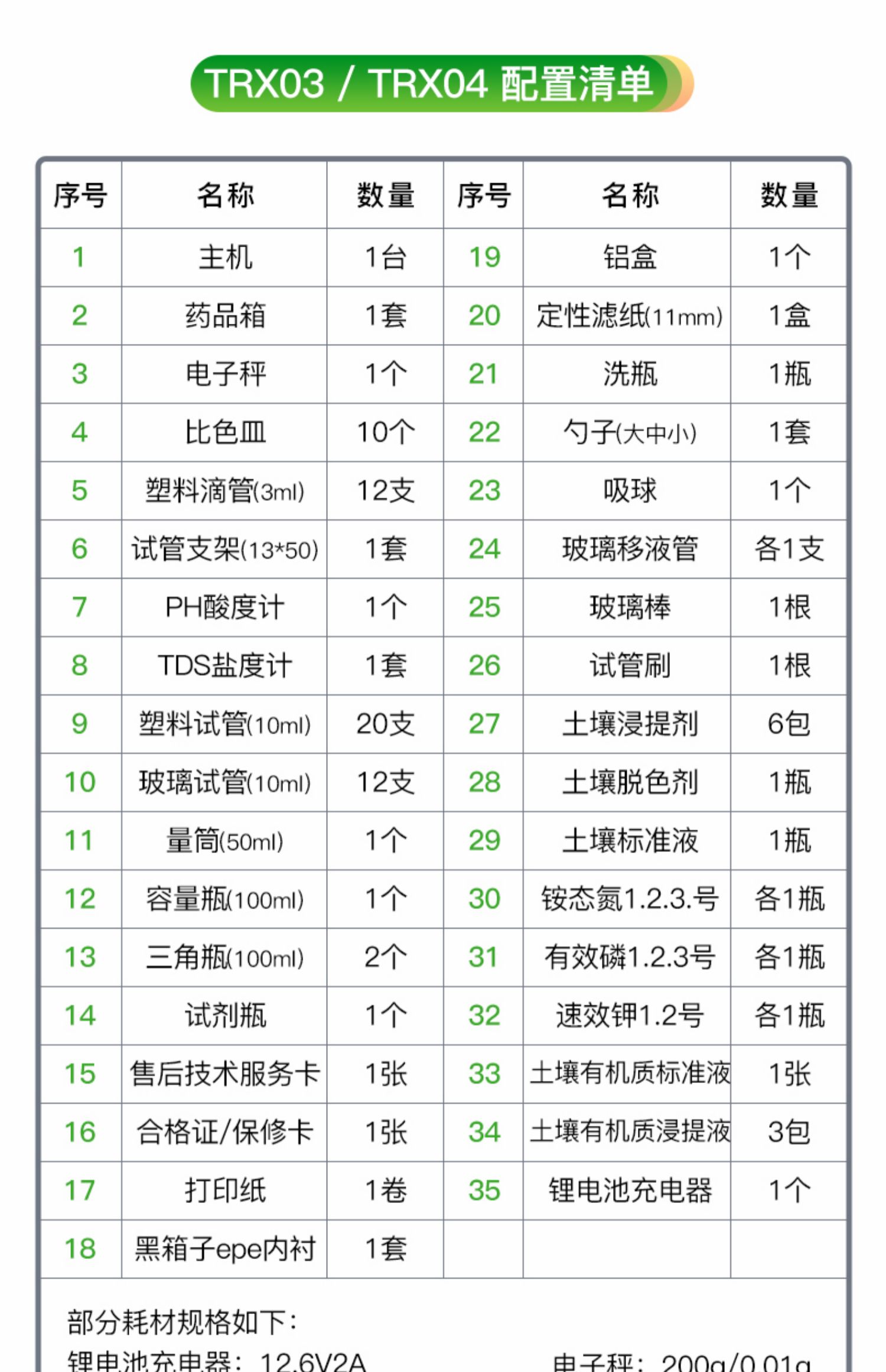 01 | 主機(內(nèi)置打印機) | 1臺 | 01 | 土壤重金屬試劑 | 1套/100次 |