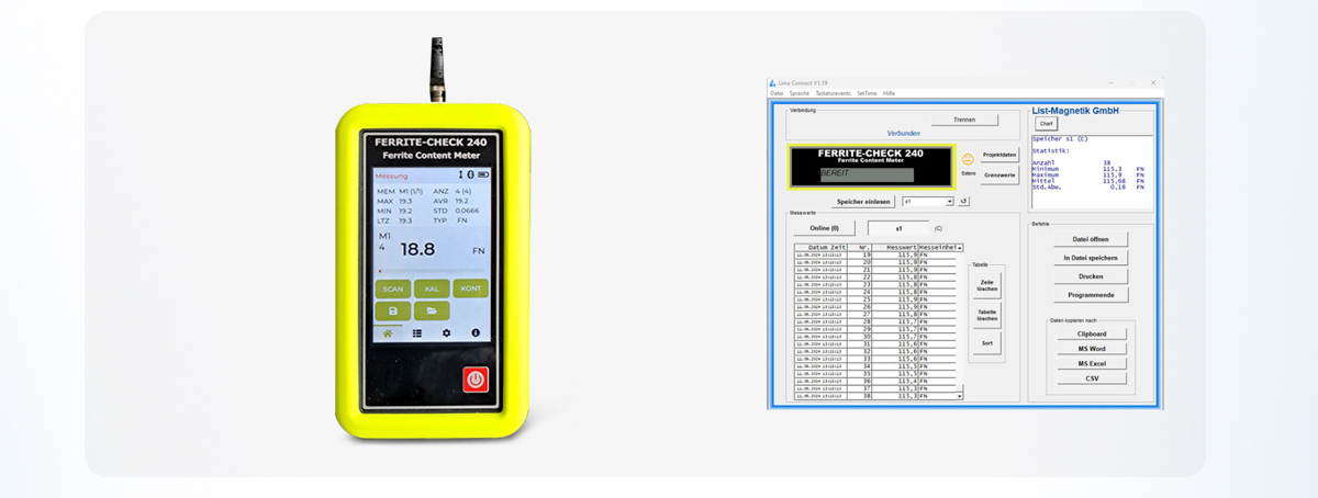 儀器可以與Windows PC進(jìn)行通信,使用Lima Connect應(yīng)用程序,測量結(jié)果可以進(jìn)行統(tǒng)計(jì)評估并以圖形方式顯示,應(yīng)用程序是免費(fèi)的。