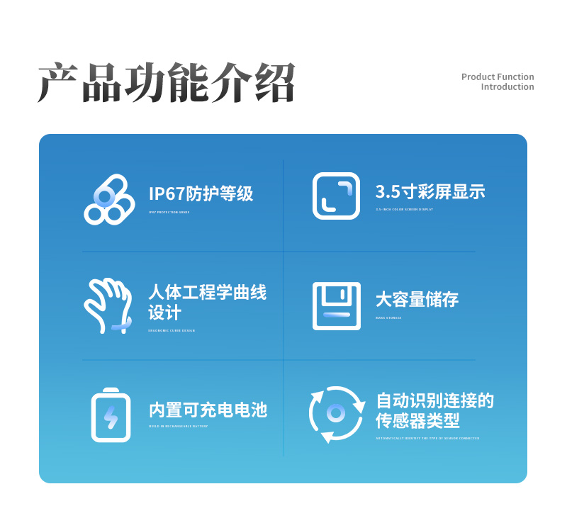 ? 自動識別連接的傳感器類型,讀數(shù)界面自動適應;