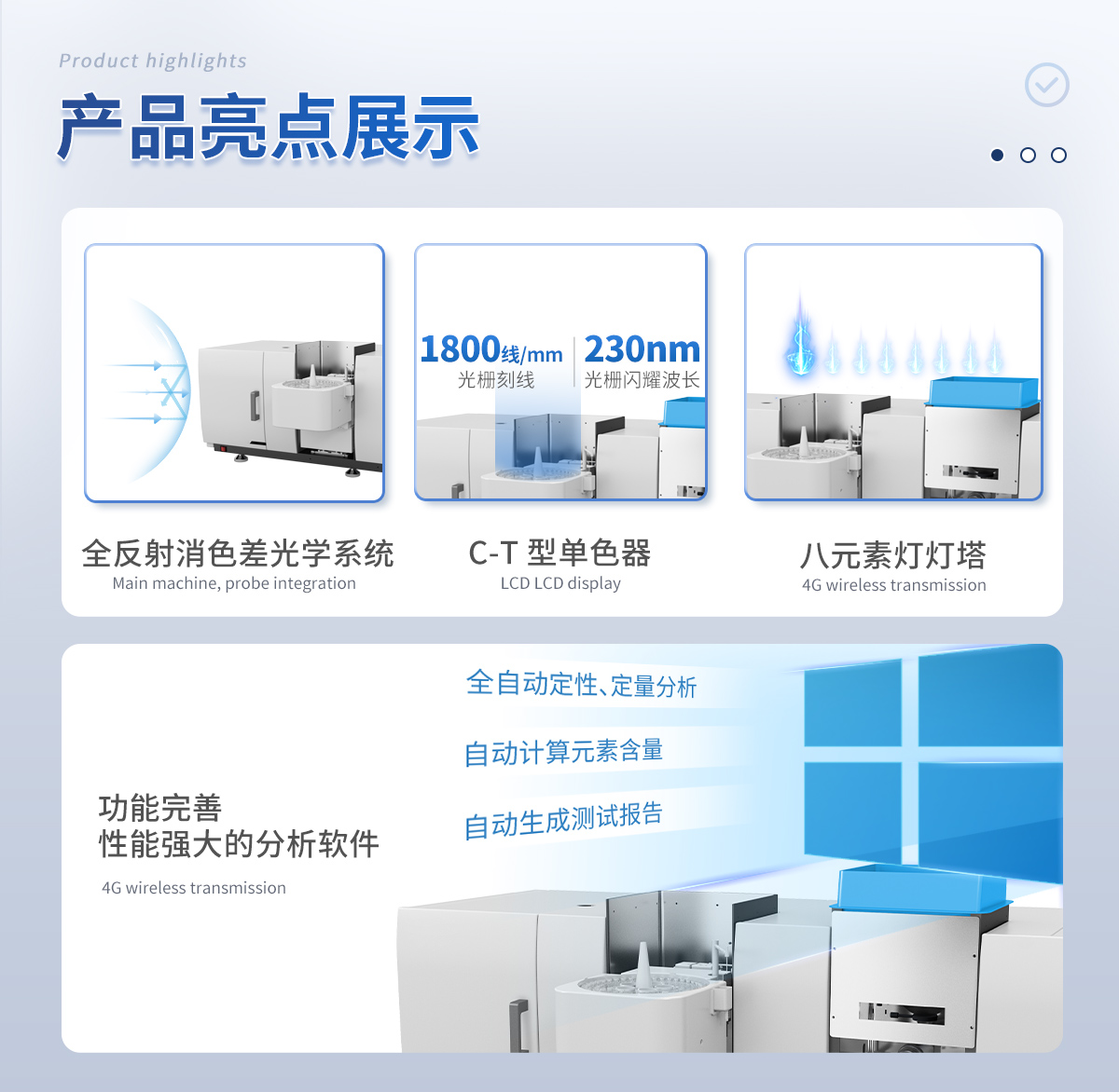 具備氘燈與自吸收兩種背景校正模式,背景信號(hào) 1A 時(shí),扣背景能力 30 倍以上。 7、 外觀采用流線型鈑金工藝設(shè)計(jì),簡(jiǎn)約時(shí)尚,美觀大方 。 8、 自主知識(shí)產(chǎn)權(quán),功能完善,分析軟件性能強(qiáng)大。 人性化操作界面,讓您的操作易如反掌,可切換中英文 Windows 風(fēng)格軟件界面,可在 Windows XP, Windows 7 等操作系統(tǒng)下完美運(yùn)行,全自動(dòng)定性、定量分析,自動(dòng)計(jì)算元素含量,自動(dòng)生成測(cè)試報(bào)告。