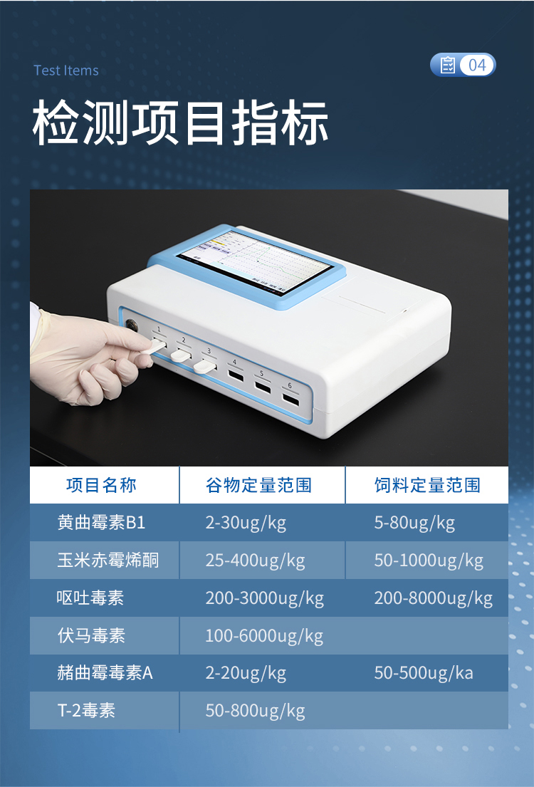 產(chǎn)品介紹: 糧食真菌毒素檢測儀6通道設(shè)計,可同時進(jìn)行一種或多種指標(biāo)的檢測,6個獨(dú)立檢測單元,檢測效率高,并且互不干擾.2026-02-23