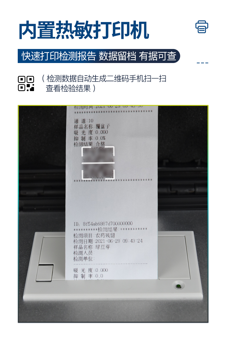 | 乙酰膽堿酯酶和丁酰膽堿酯酶試劑均可以使用,符合國(guó)家標(biāo)準(zhǔn)和農(nóng)業(yè)部標(biāo)準(zhǔn)的要求。 | 自動(dòng)判斷樣品是否合格,檢測(cè)結(jié)果更加直觀。 | 儀器具有100多種蔬菜名稱菜單庫(kù),分類管理,并可按需添加或刪除蔬菜名,編輯蔬菜名稱,可直接打印出蔬菜名稱。 | 檢測(cè)通道:12個(gè)檢測(cè)通道,可以同時(shí)測(cè)試多個(gè)樣品,循環(huán)檢測(cè),即放即檢,每個(gè)樣品由程序控制分別獨(dú)立工作,不會(huì)互相干擾。 | 智能操作系統(tǒng),采用更加人性化操作,主控采用多核處理器,主頻1.88Ghz,運(yùn)轉(zhuǎn)速度更快速,穩(wěn)定性更強(qiáng)。 | 顯示方式:7英寸高靈敏真彩觸摸屏顯示,人性化中文操作界面,讀數(shù)直觀、簡(jiǎn)單。 | 打印機(jī)采用串口5v打印,可選擇手動(dòng)打印或者自動(dòng)打印,三分鐘出打印結(jié)果,打印格式為檢測(cè)人姓名、吸光度差值、檢測(cè)時(shí)間、檢測(cè)機(jī)構(gòu)、樣品名稱及結(jié)果判定。 | 光源采用進(jìn)口超高亮發(fā)光二極管,具有低功耗、高精度、穩(wěn)定性強(qiáng)、光源可控可以關(guān)掉不使用的光源,響應(yīng)速度快等優(yōu)點(diǎn)。 | 智能恒流穩(wěn)壓,光強(qiáng)自動(dòng)校準(zhǔn),長(zhǎng)時(shí)間連續(xù)工作光源無(wú)溫漂現(xiàn)象。 | 儀器具有GPRS遠(yuǎn)傳功能,可插手機(jī)卡實(shí)現(xiàn)數(shù)據(jù)遠(yuǎn)傳平臺(tái),wifi聯(lián)網(wǎng)功能,可將數(shù)據(jù)快速上傳電腦,進(jìn)行數(shù)據(jù)管理與統(tǒng)計(jì)。 | 采用USB2.0接口設(shè)計(jì),方便數(shù)據(jù)的存貯和移動(dòng),并可隨時(shí)與計(jì)算機(jī)直接相連,并且可用計(jì)算機(jī)控制儀器。實(shí)現(xiàn)數(shù)據(jù)查詢、瀏覽、分析、統(tǒng)計(jì)、打印等。 | 智能化程度高,儀器具有自檢功能:具有開機(jī)自檢和調(diào)零功能,具有自動(dòng)檢測(cè)重復(fù)性功能 | 儀器具有自身保護(hù)功能,可設(shè)置用戶名及密碼,防止非工作人員操作等。 | 采用DC12v直流供電,安全系統(tǒng)更高,并且配備6A鋰電池充電器。 | 儀器具有重新校準(zhǔn)、鎖定、恢復(fù)出廠設(shè)置功能。 |